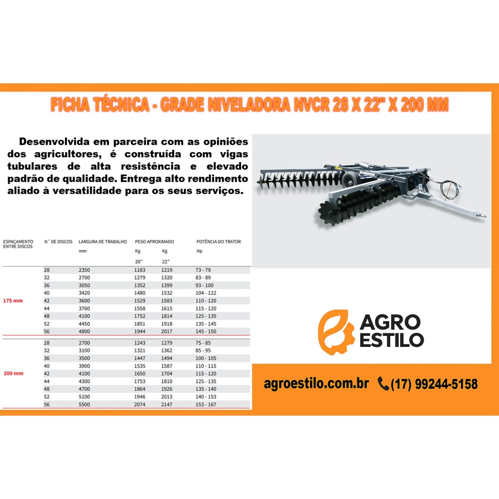 • Grade Niveladora NVCR 28 x 22 Agro Estilo – Eficiência e Qualidade no Preparo do Solo