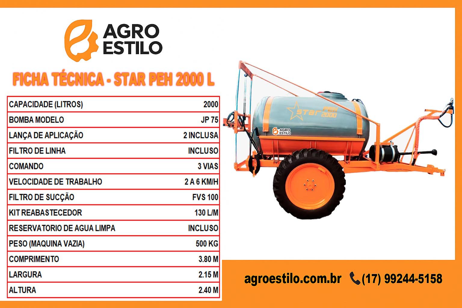 • PULVERIZADOR STAR PEH 2000 LITROS PECUARIO - AGRO ESTILO